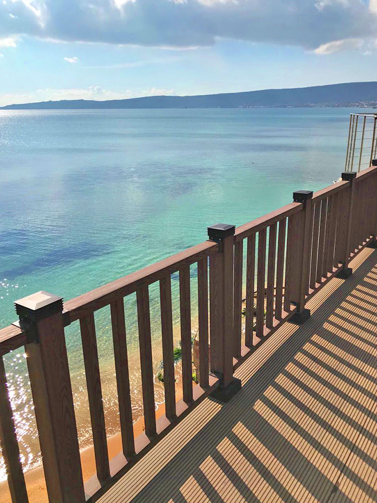• Широкий выбор ограждений из ДПК позволяет сочетать их с любыми другими материалами.