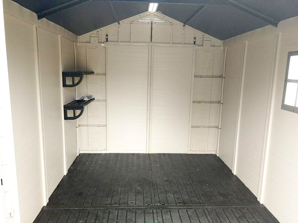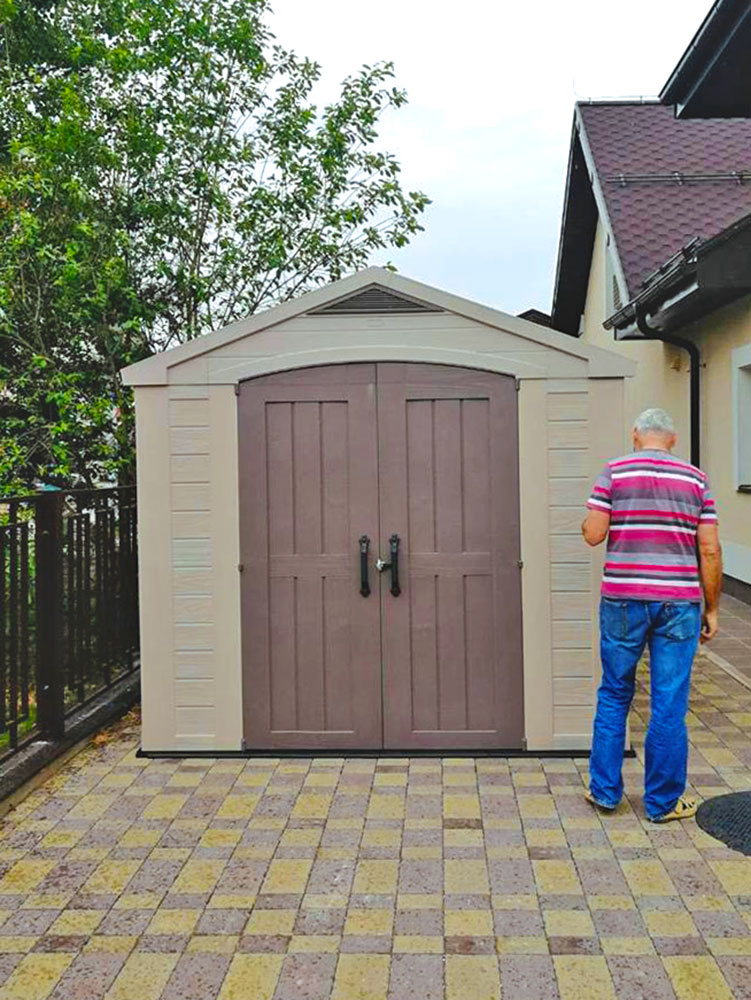 Сарай из высококачественного пластика, не подвержен деформации и устойчив в условиях высокой ветренности, жары и высокой влажности. В конструкции используются стальные стержни, что усиливает конструкцию, а прочный и плотный пластика не дает деформироваться конструкции.